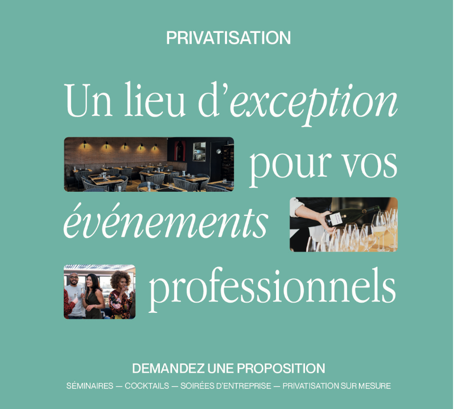 Offrez un cadre prestigieux à vos événements professionnels et personnels. Dîner d'entreprise, anniversaire ou célébration familiale : nous mettons notre décor, notre cuisine et notre service au cœur de votre projet.